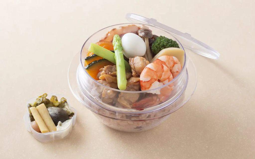 Contents | ・赤飯(栗と小豆の甘め仕立て) ・合鴨ロースト・鶏肉煮・海老煮 ・しめじ揚げびたし・茹でうずらの卵・杏子甘煮・揚げ南瓜 ・筍煮・ブロッコリー煮・茹でアスパラ・昆布佃煮・香の物 |